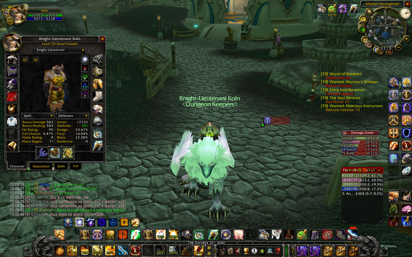 | Quote (Ярик) Ответь мне на тройку вопросов. 1.Сколько спд ты считаеш для паладина достаточным чтобы танчить боссов т6 рейдах. 2.До скольки палу кочегарить додж, а потом переходить на пэри. 3.И чему отдаш предпочтение в статах при танкинге хс. Фига допрос =) Еслиб я отвечал...: 1. 250. 2. 32-35%. 3. Не переодеваюсь особо. Так что додж-стама-спд-блок-парри.